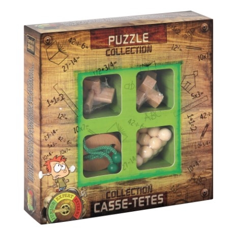Schachtelgröße je Set: 20 × 20 × 5 cm Anzahl Spiele: 12 (3 × 4er-Sets) Material: Holz Schwierigkeitsgrad: von leicht bis schwer – je nach Geduld und Knobelerfahrung Altersempfehlung: ab 8 Jahren