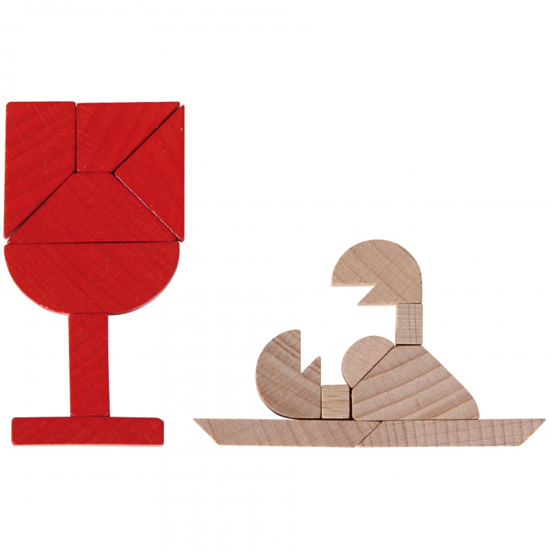 Sieben Holzteile ergeben einen Würfel – klassisches Knobelspiel mit geometrischem Reiz, kompakt und knifflig.